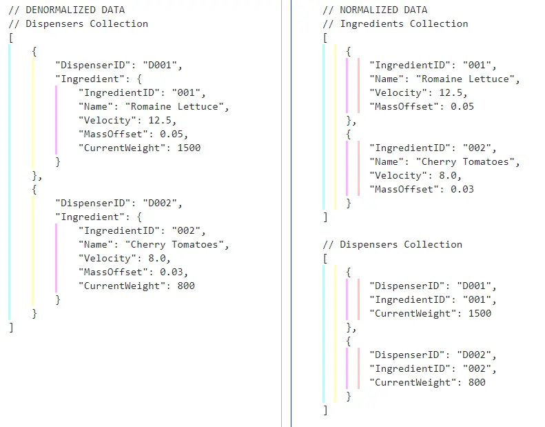 Before we proceed, here's an example of normalized and denormalized NoSQL data: